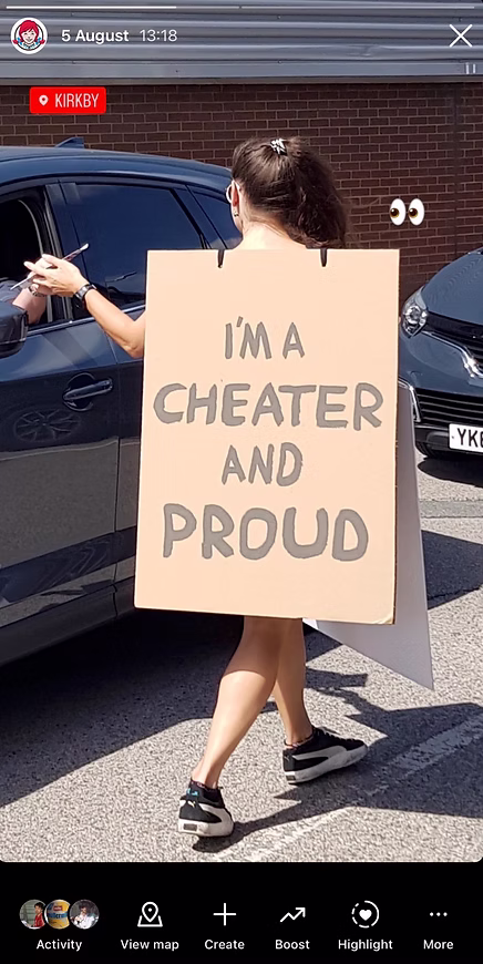 To open Wendy’s new Kirkby store, we took inspiration from actual cheaters and had people confess with homemade signs.
